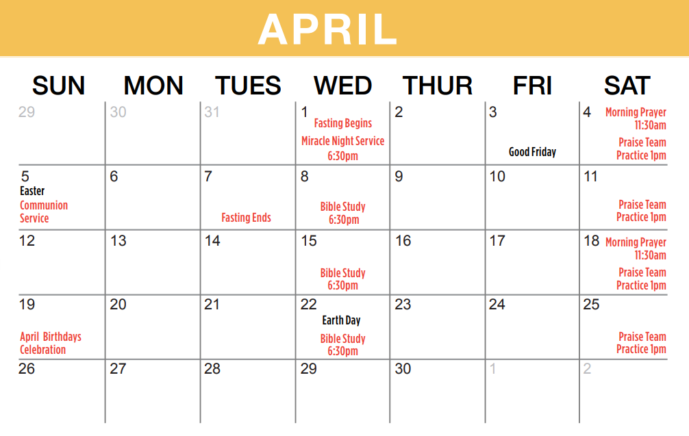April 2026 Calendar